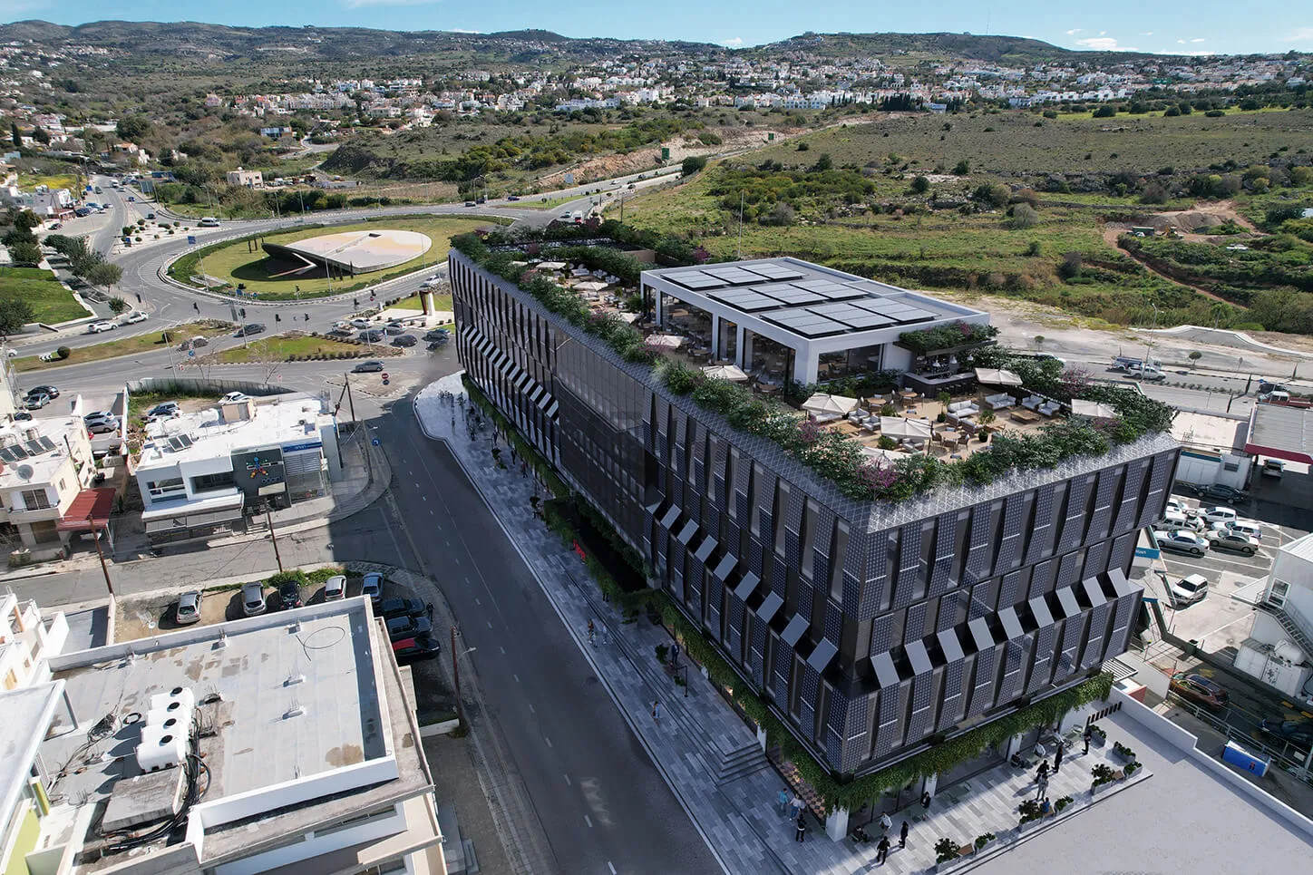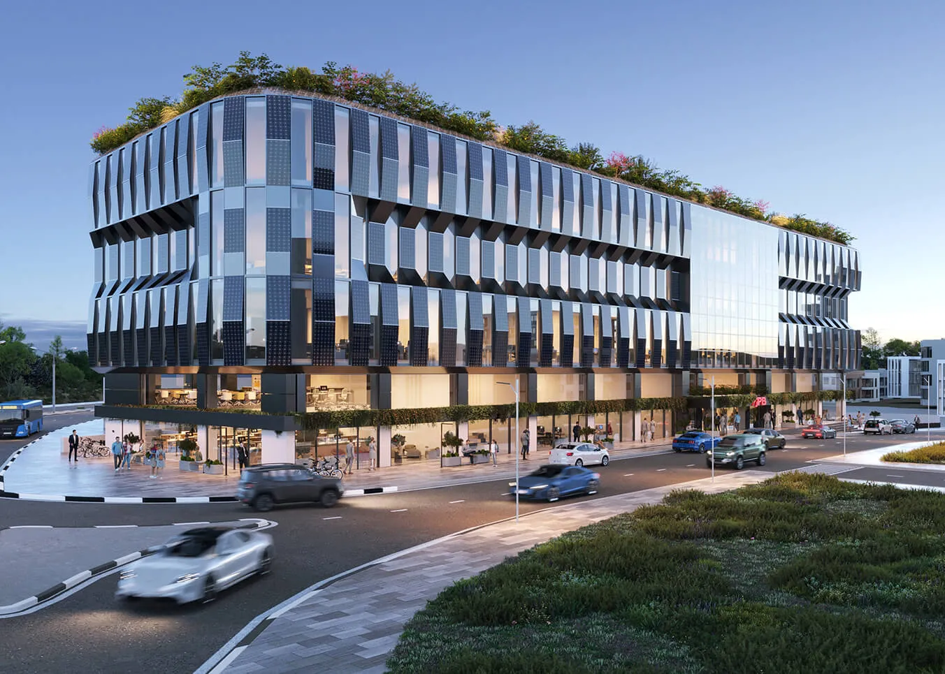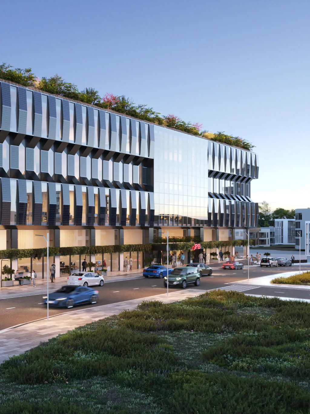 The redevelopment of the former Rio Cinemas complex transforms a landmark into a sustainable hub for commerce and collaboration. Defined by solar-integrated facades and lush greenery, the design breathes new life into the urban fabric of the city.