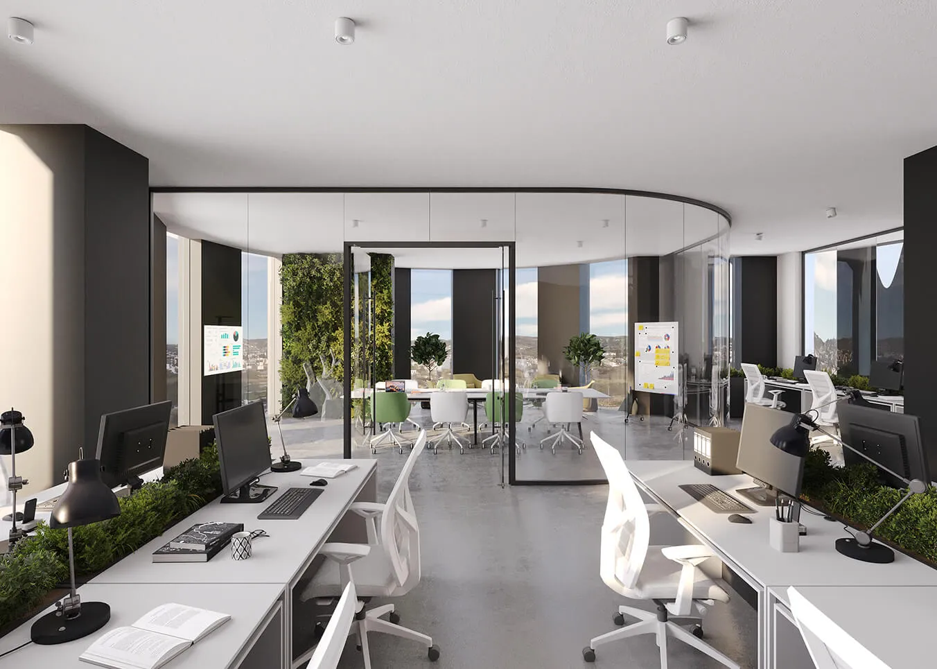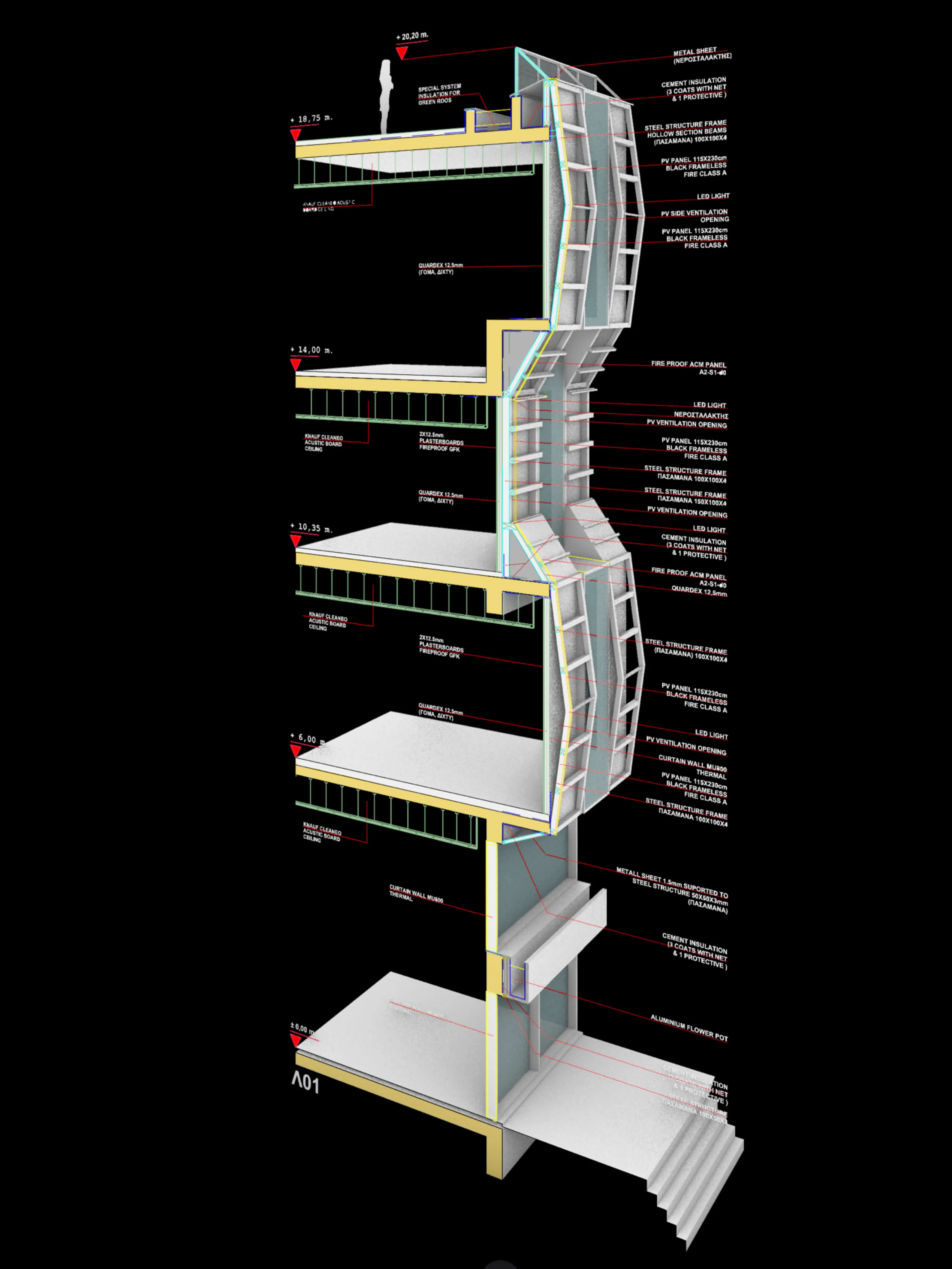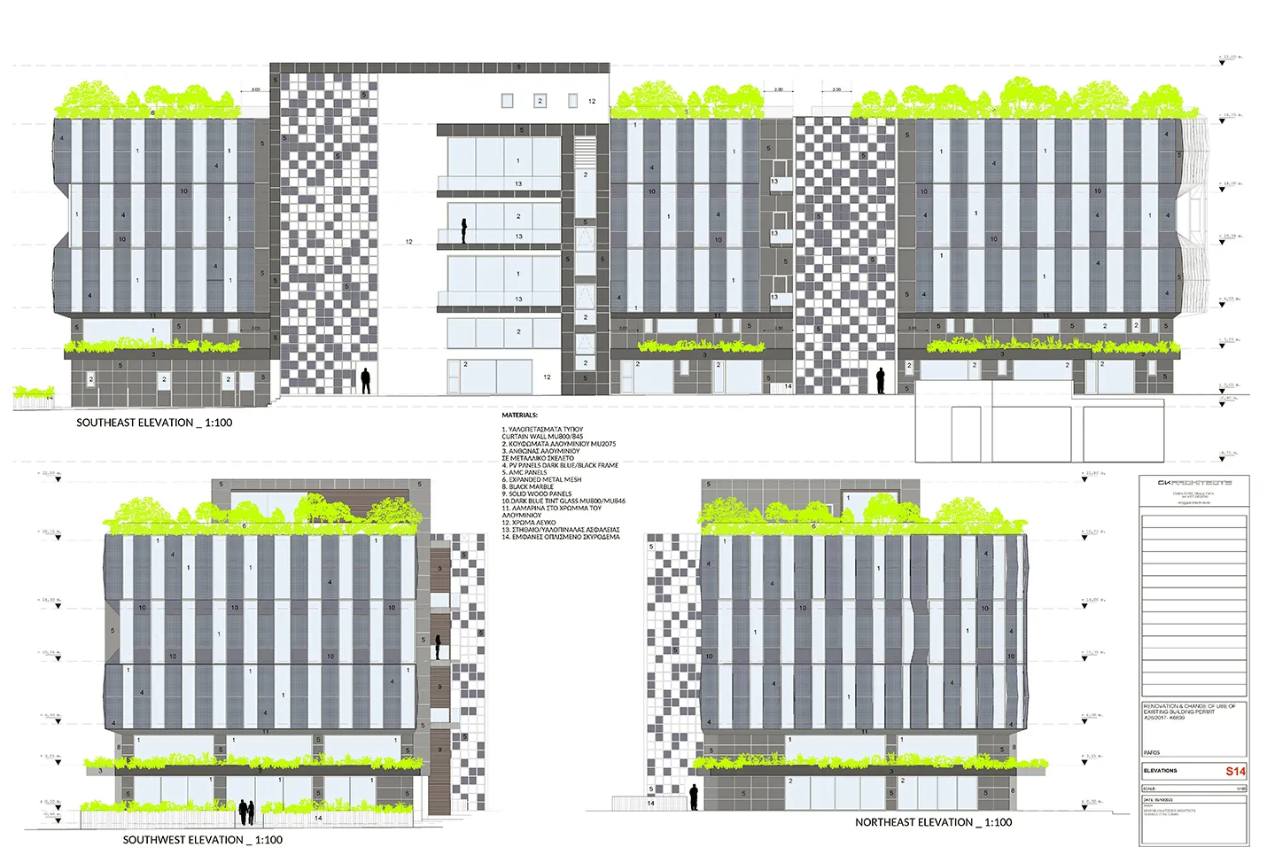 The building balances diverse functions, from vibrant ground-floor shops to flexible office spaces designed for social and collaborative work. On the top floor, a restaurant offers panoramic city views, surrounded by meticulously landscaped outdoor and semi-outdoor areas. By incorporating extensive plantings and renewable energy systems on both the roof and facade, the project prioritizes environmental sustainability while creating a modern, mixed-use environment that honors its history through contemporary innovation.