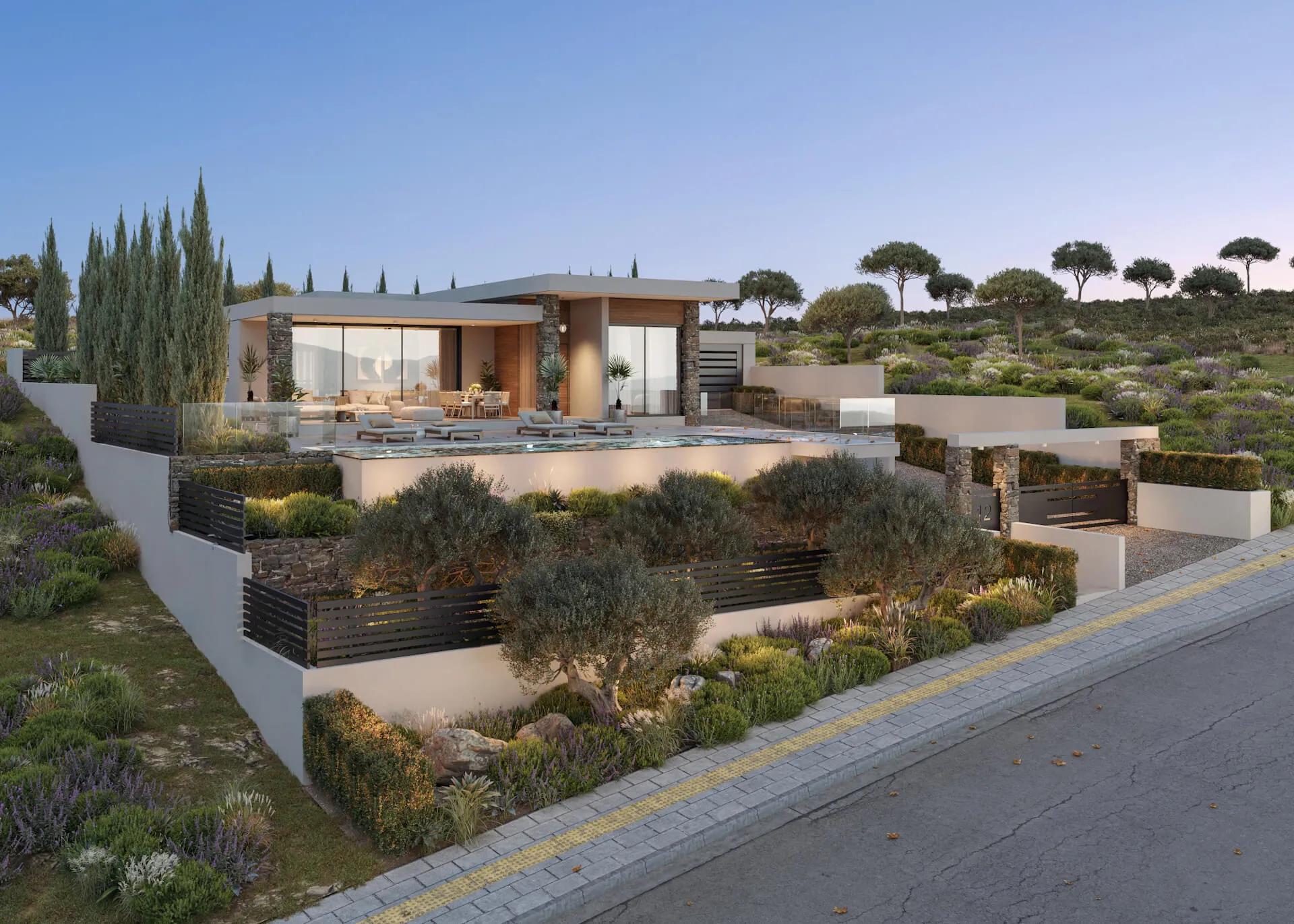 Perched atop Tala’s scenic heights, this residence harmonizes minimalist architecture with its rugged surroundings. Strategically positioned, the layout captures unobstructed panoramic views of the Paphos coastline.