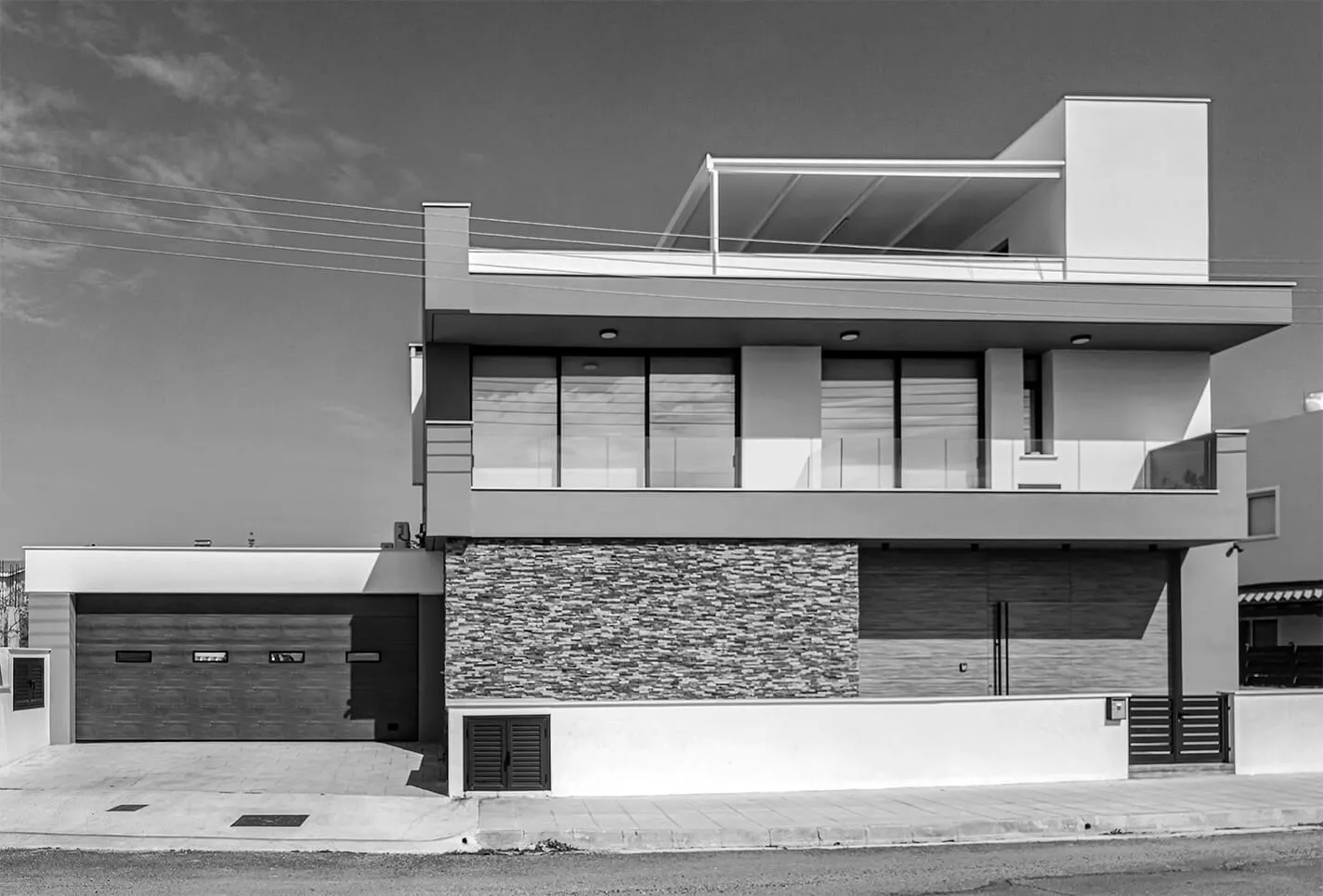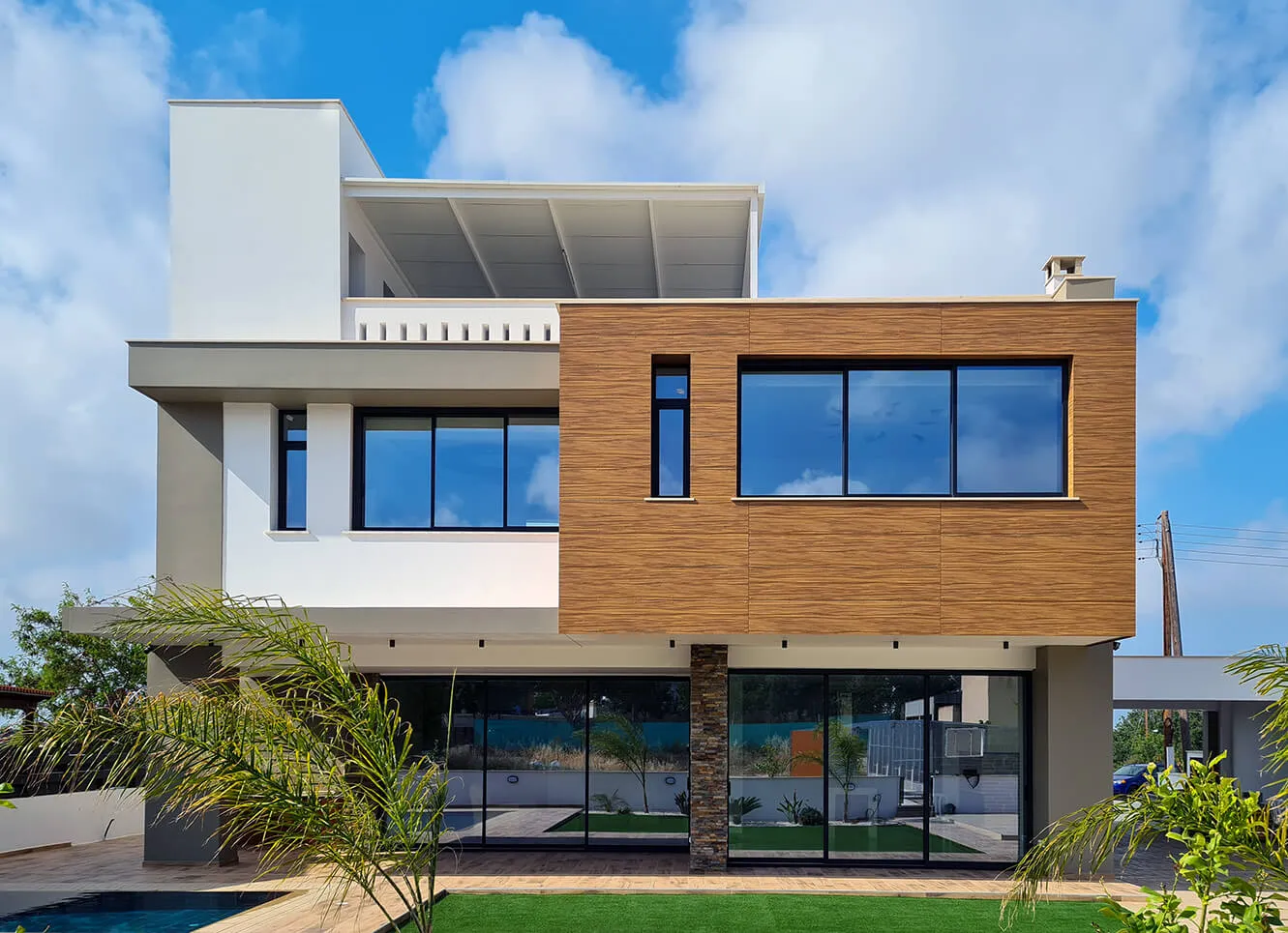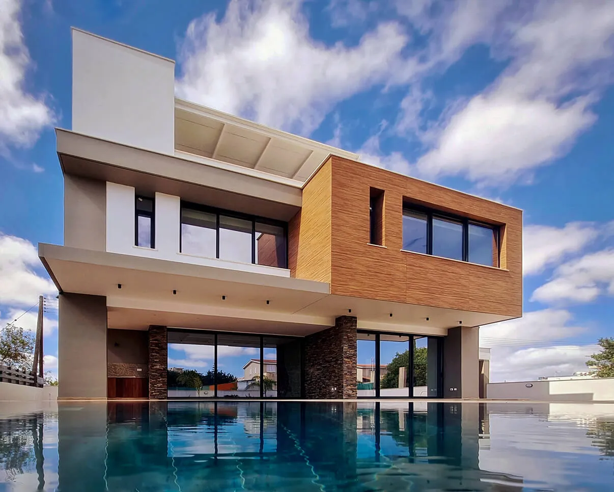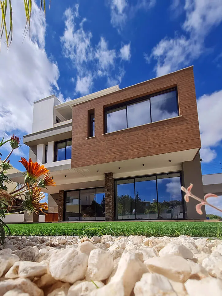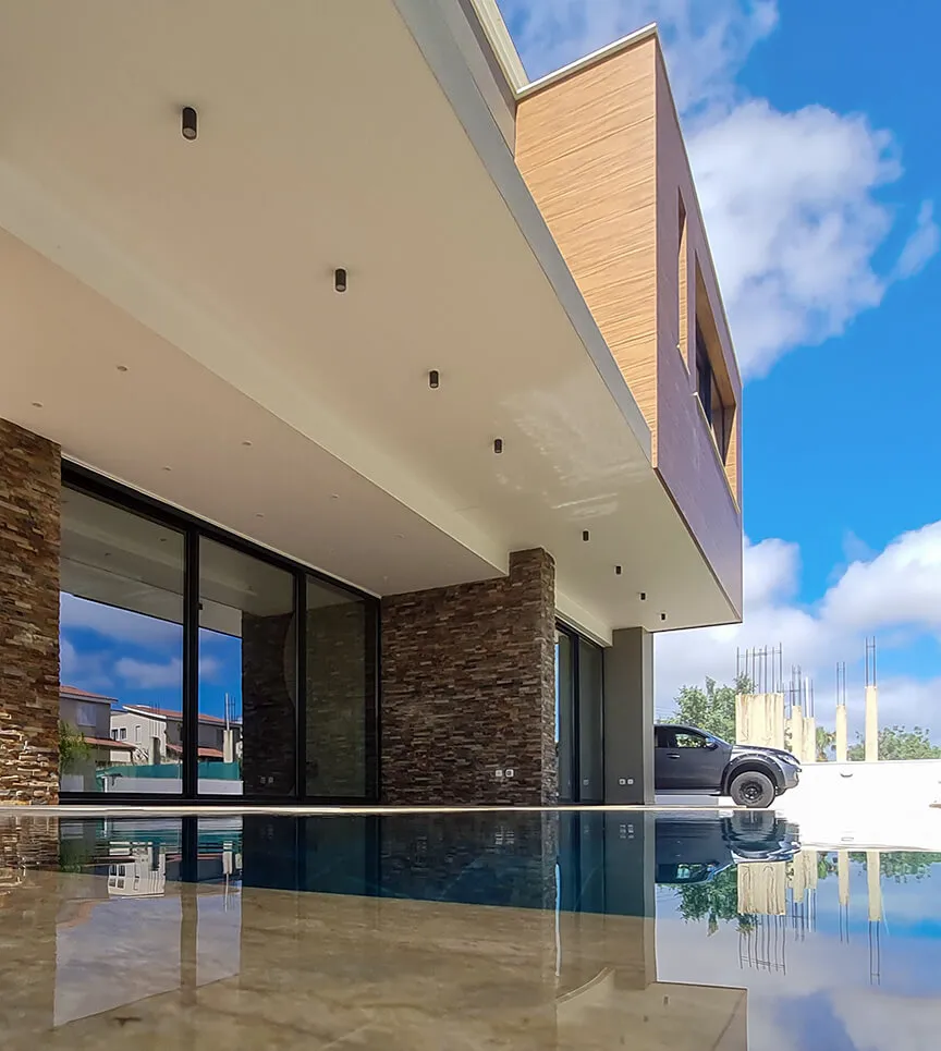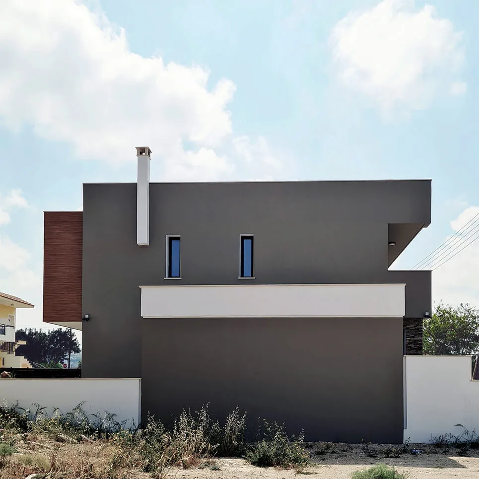 Located in Paphos’ Anavargos district, this family residence prioritizes privacy through a strategic street frontage. While the road-facing elevation remains secluded, the rear architecture unfolds into a transparent sanctuary centered on the garden.