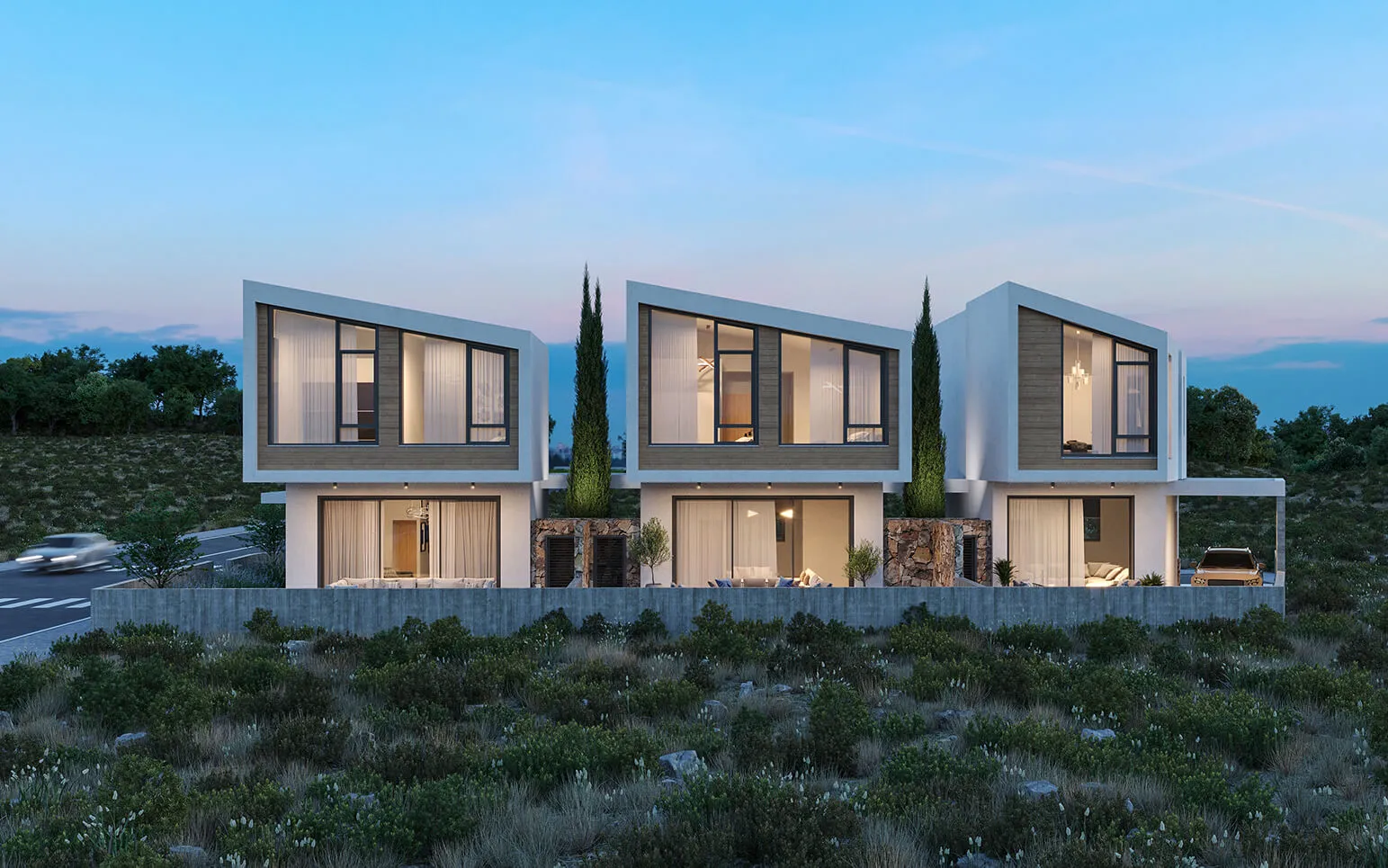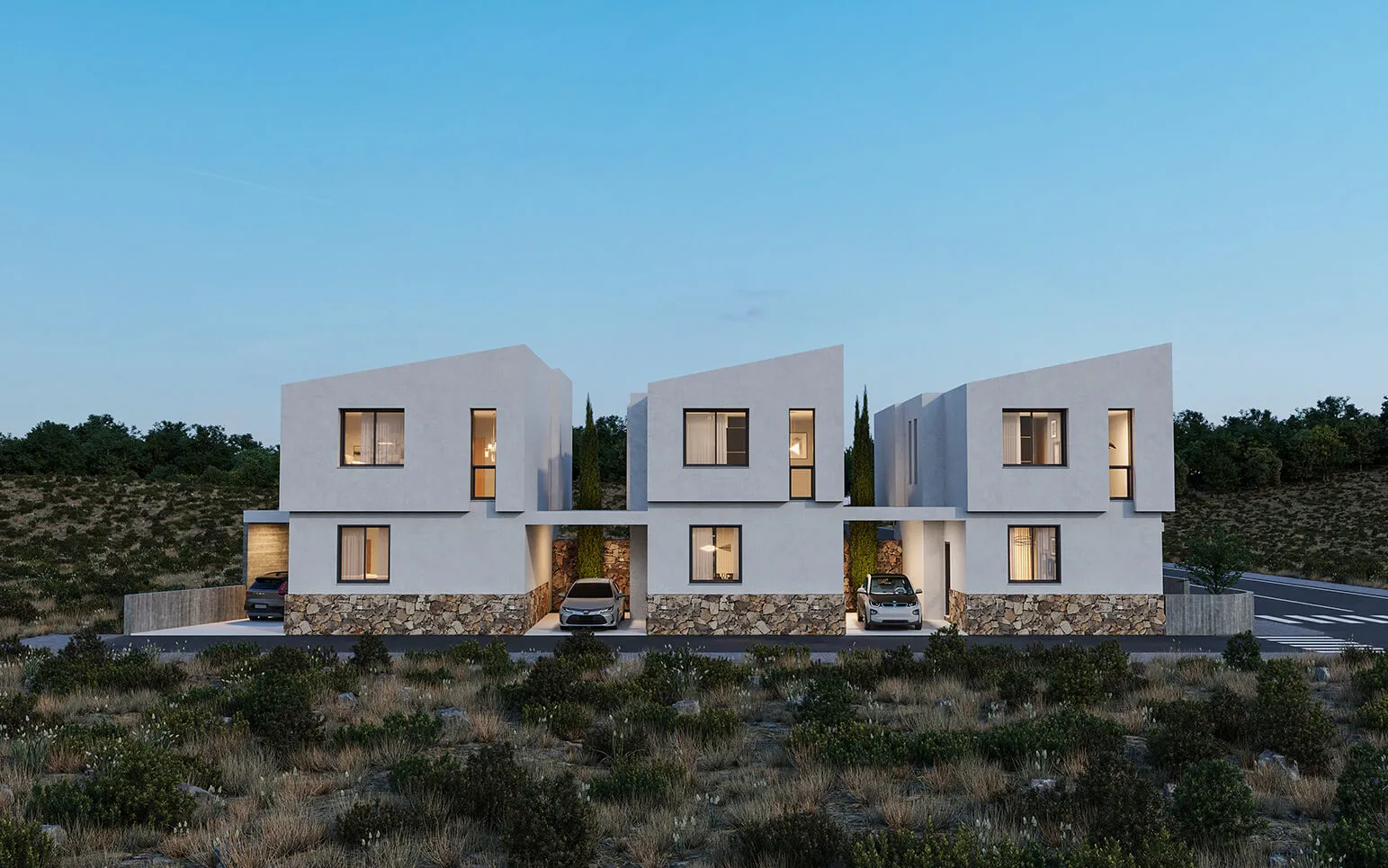 Nestled in the tranquil village of Anarita, this contemporary project comprises three harmonized units defined by sleek, angular facades. Expansive windows invite natural light while framing panoramic views of the serene Cypriot countryside.