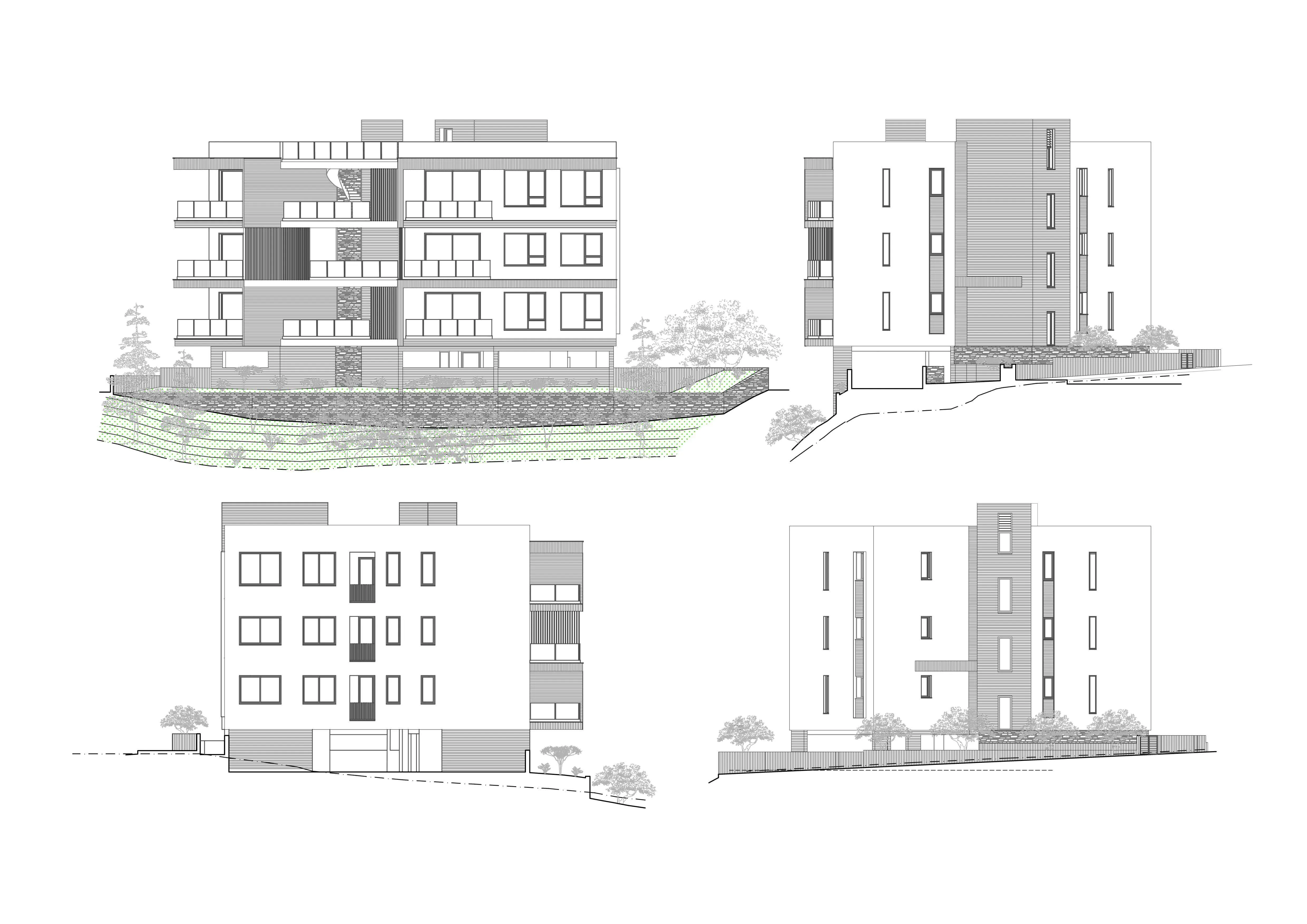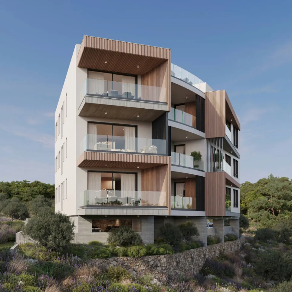 The design places two units per floor to ensure maximum privacy and modern comfort for every resident. By utilizing board-formed concrete and natural textures, the building achieves a tactile, aesthetic appeal that balances its functional layout. Each apartment is oriented to maximize natural light, offering a serene living experience that feels both protected and open. The result is a seamless integration of contemporary form and topographical sensitivity, providing a private retreat that respects the site's unique character.