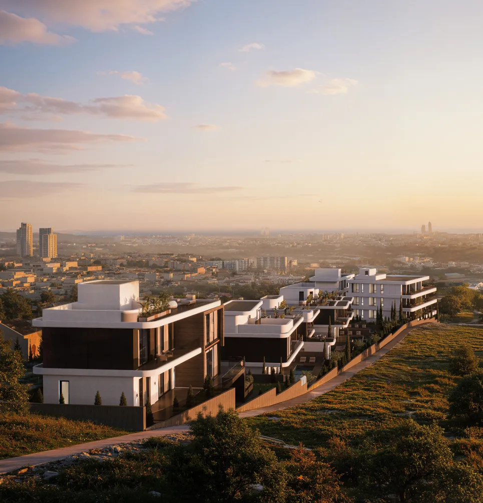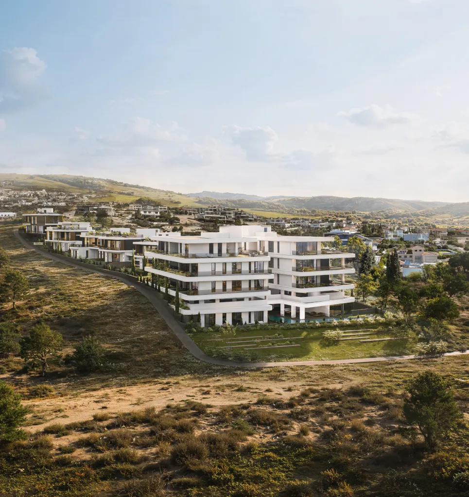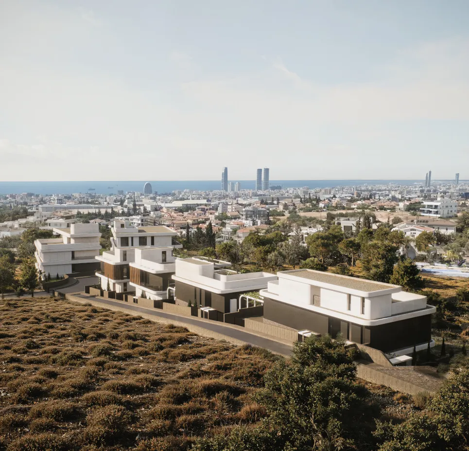 Palina I is a sophisticated residential development in Limassol, featuring five luxury villas and two contemporary apartment blocks. The masterplan balances private residential living with a shared architectural language of modern elegance.