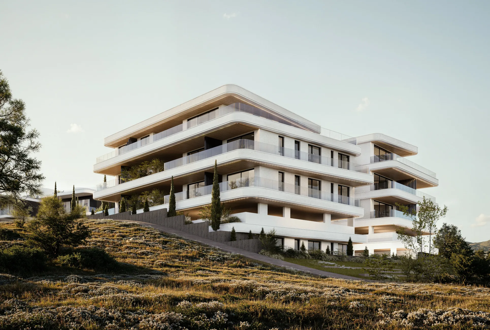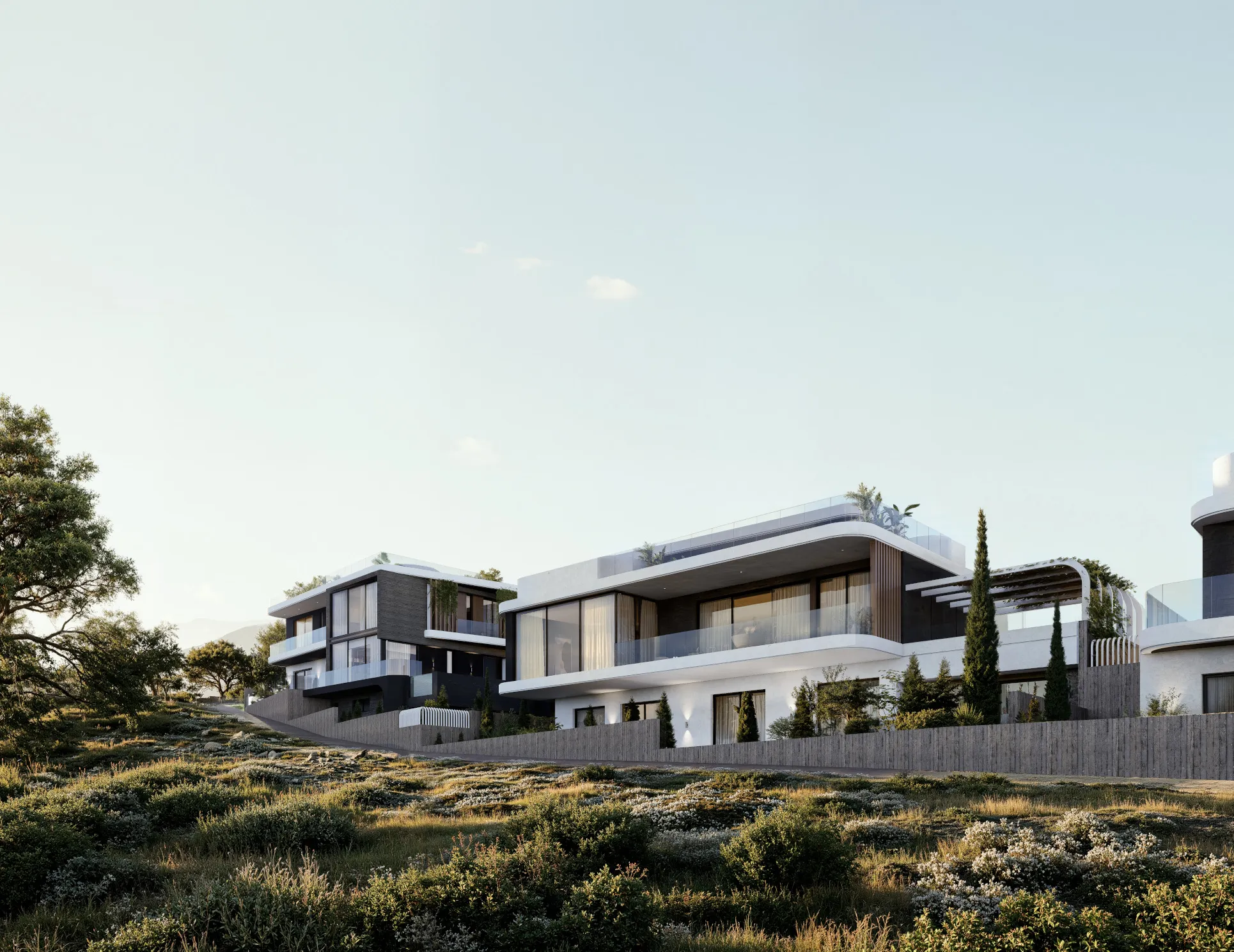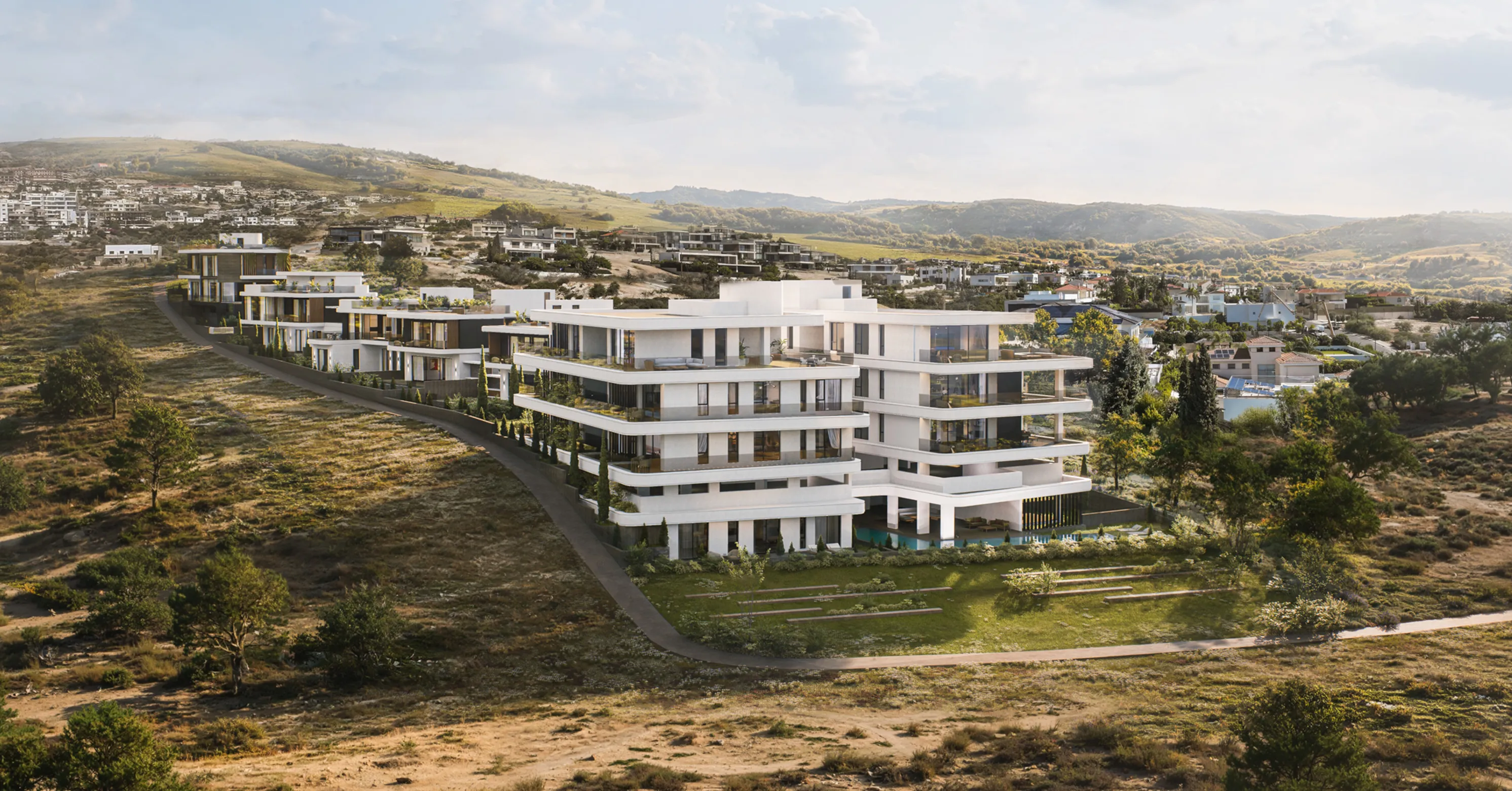Palina I is a sophisticated residential development in Limassol, featuring five luxury villas and two contemporary apartment blocks. The masterplan balances private residential living with a shared architectural language of modern elegance.